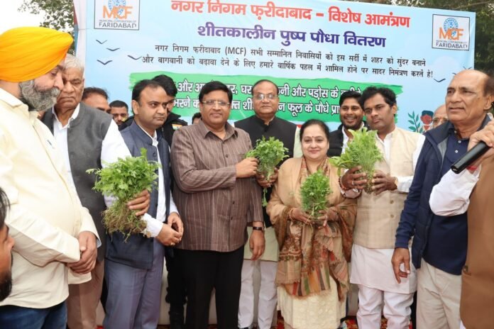 फरीदाबाद। फरीदाबाद में हरियाली, सौंदर्यीकरण और नागरिक सहभागिता को बढ़ावा देने हेतु नगर निगम और स्थानीय जनप्रतिनिधियों द्वारा एक बड़े स्तर पर आज हरित अभियान की शुरुआत की गई है। यह जानकारी देते हुए कैबिनेट मंत्री विपुल गोयल ने सेंट्रल पार्क, आरडब्ल्यूए सेक्टर-14 में नगर निगम फरीदाबाद द्वारा आयोजित शीतकालीन फूल वितरण समारोह में बतौर मुख्यातिथि शिरकत की। उनके साथ नगर निगम कमिश्नर धीरेन्द्र खड़गटा और मेयर प्रवीण जोशी भी मौजूद रहे।